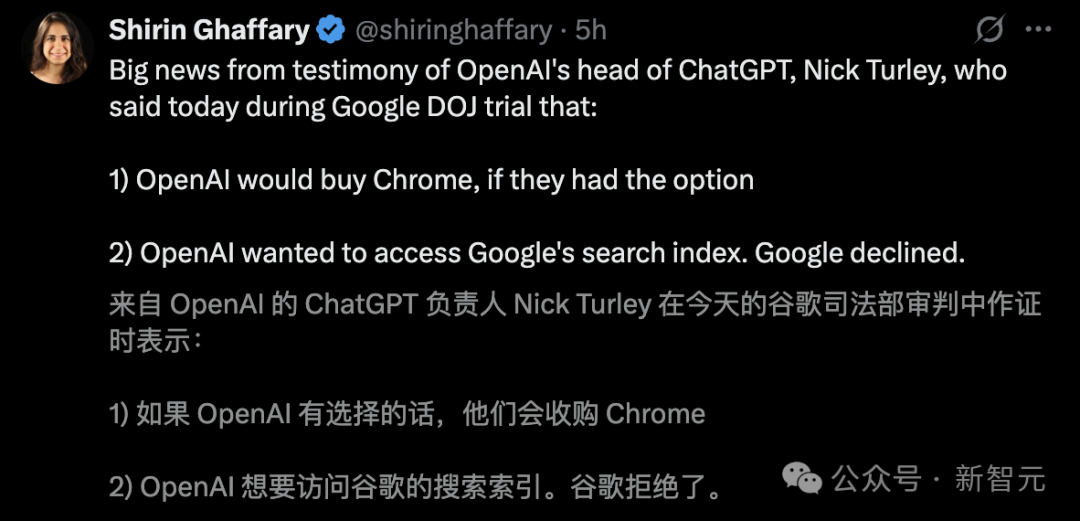 对此,Turley激动地描绘了一个愿景,「如果ChatGPT成为Chrome默认搜索,OpenAI能为用户带来无与伦比的体验。