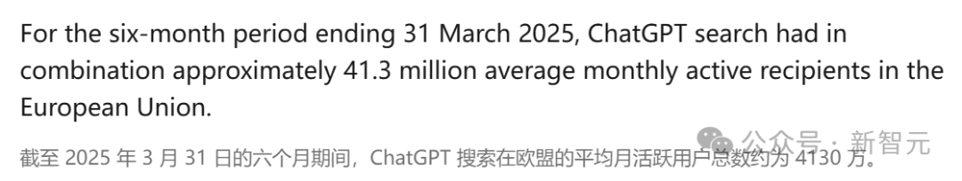 根据OpenAI自己披露的数据,ChatGPT搜索在截至2025年3月的六个月期间,已拥有4130万的月活跃用户。