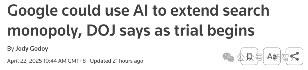 听证会上,司法部称谷歌不仅在搜索领域占据主导地位,还试图将其垄断力量扩展到AI领域。